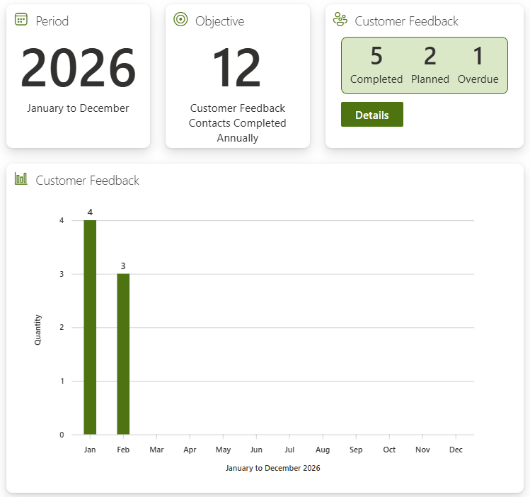 Dasboards enable the organization to identify issues early, respond to needs, and drive continual improvement, helping maintain strong relationships, meet requirements, and enhance overall quality.