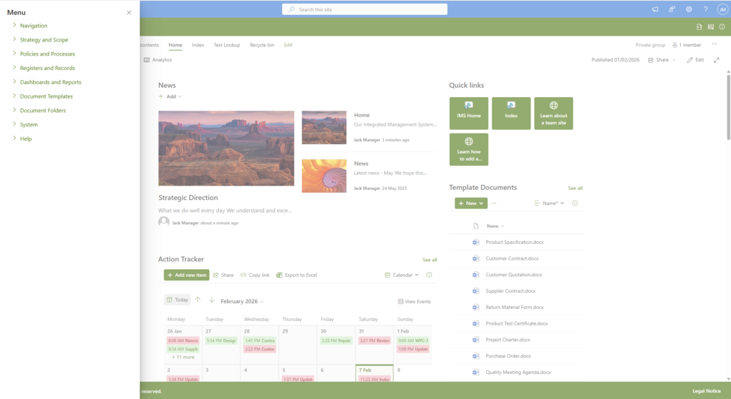 JAKMAN is a powerful, SharePoint‑driven ISO management platform that transforms complex compliance requirements into a streamlined, user‑friendly experience. Purpose‑built to align with international standards for Quality, Environmental, and Occupational Health & Safety Management, it empowers organisations to achieve certification, maintain compliance, and drive continuous improvement with confidence.